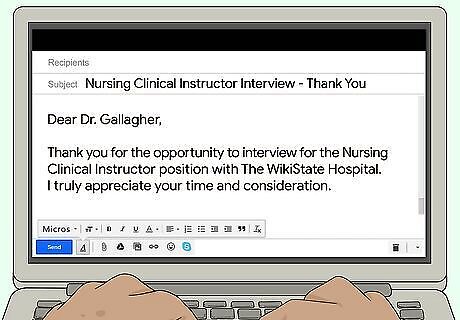 Interview with the school’s dean and other faculty members. Dress professionally and arrive at least 15 minutes earlier than the scheduled time to show you’re punctual. Maintain a friendly and personable tone while you’re interviewing so you leave a good impression. Answer any of the interview questions truthfully and to the best of your ability. Thank the dean for the interview regardless of how it went and let them know you hope to hear from them soon. You may also need to interview with other clinical instructors to ensure you’re a good fit.