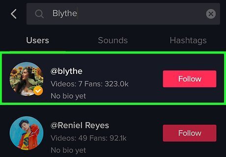 Type the person’s username into the search bar. It’s at the top of the screen.