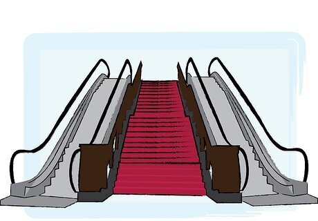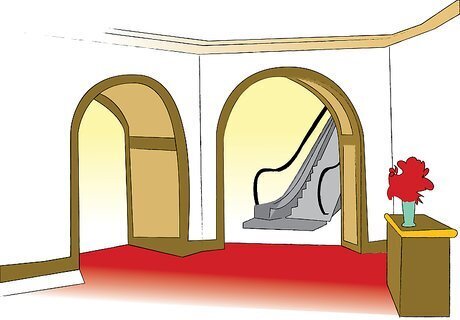 Walk out from the lobby area. Find the Escalator if you can walk or use a pair of stairs. If not, the Elevator should be nearby.