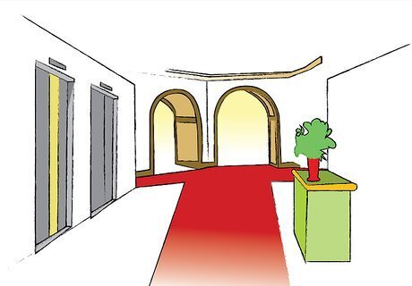 Walk over to the nearest elevator. Take the elevator from your room down to the fourth floor.