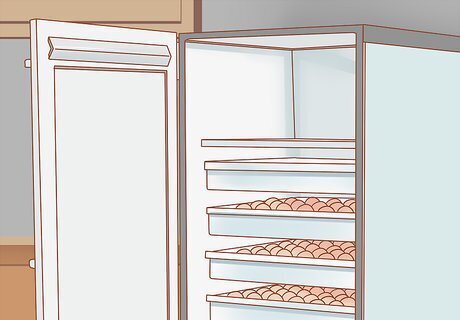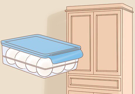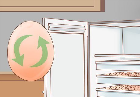 Store the eggs in a cool area for up to a week. Make space in a temperature-controlled area like a garage or pantry. Set the eggs in a storage container with the pointed end down. Keep them in storage until you're ready to return them to the hens or move them to an incubator. Egg cartons are safe to use as storage containers if the eggs fit. You can also purchase plastic egg containers online or from farm supply stores. The eggs will not last forever in storage. If you wait too long, the egg will not hatch.