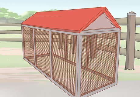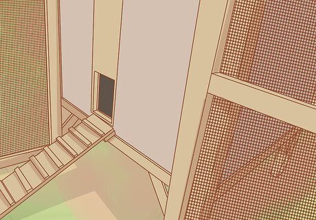 Build roosting spaces or perches for each chicken you keep. Chickens use roosting perches to get off the cold floor and take naps. Roosting perches are often branches, wood fences, or wood ladders placed about 1.5 ft (0.46 m) off the floor. Each chicken needs about 10 in (25 cm) of space on the perch, although they often huddle closer together at night for warmth. Make sure the chickens are comfortable or else you will have a hard time breeding them. Research your breed's needs in order to determine how big to make the roost.