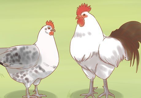 Choose a breed for meat, eggs, or another goal. There are many breeds out there for you to own, and some of them are more suited to specific purposes than others. Some exotic breeds are very good at producing eggs you can use at home or raise into larger flocks. Some breeds produce less eggs, leading to smaller flocks or more chickens used for meat. Have a plan for either selling chickens or dealing with ones you can't sell. Take the price and availability of each breed into account. Breeding expensive chickens is potentially good business, but only if you're able to find buyers. For example, breeds like Deathlayer and Lakenvelder lay lots of eggs each year. Many of these breeds also serve well as broody hens to sit on eggs until they hatch. Most breeds are useful as a source of meat, but bigger chickens are better. Breeds like the Dominiques and Dorkings are good sources of both eggs and meat. Some breeds are more aggressive than others. If you have children or are breeding chickens for pets, try docile breeds like Cochins or Iowa Blues.