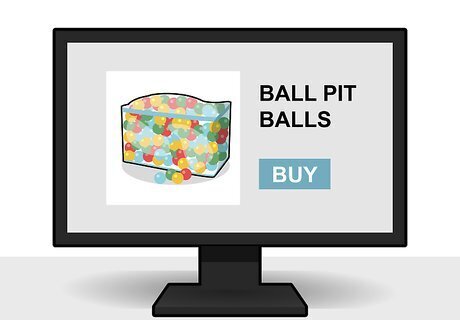 Get some balls. Using the calculator linked above, you will now know how many playpen balls you need to acquire. The number may seem large at first, as chances are that you – like most people – may have expected to only need a few hundred balls to fill your space. Trust the math here though: a 4′x8′x2.5′ ball pit will need well over 5,000 balls. Search online for cheap playpen balls in bulk. Ebay, craigslist, and kijiji are good places to find balls for cheap. If they are used, be sure to clean them. Wash them in your bathtub and/or spray them down with a one part bleach, nine-part water solution before putting them somewhere to dry. Do not put damp balls into your ball pit.