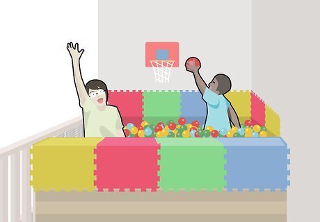 Add toys, friends and enjoy! A small basketball net is a must for any ball pit. Not only because it’s fun to shoot hoops with playpen balls, but because it will also give people something to throw them at other than each other... or you. Also, an inflatable shark just makes sense. Every ball pit should have a shark in it. Now get into your colorful box of awesomeness, call all your friends, convince them that you have actually done this and aren’t just pulling their leg, and have a blast!