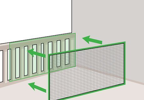 Enclose your ball pit area. The last thing you want is your balls rolling all over the place. So be sure that you can somehow prevent them from either escaping the ball pit itself, or the area that the ball pit is located. If you are building your ball pit on your balcony or in a room with low windows, you will want to put up screen in any area where the balls could escape. Luckily, screen is relatively cheap at approximately $10/roll. The staple gun makes it extremely easy to tack up screen fast, especially if you are outside. If you are building on a balcony, you can screen in the entire area top to bottom, or you can just build the screen around the ball pit itself, leaving a hole or slit in the screen to allow you to enter or exit it. Your screen may come under a lot of stress while people play in your ball pit, so be sure to use a strong material.