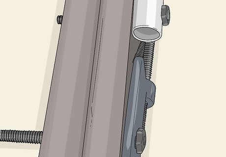 Attach the conduits to the brackets with nuts and bolts. Place the end of the conduit with the drilled hole so it’s in the center of the bracket on your boat. Push a 1 ⁄2 in (3.8 cm) hex bolt through the holes on the bracket and the conduit and screw a nut onto the other side. Test pivoting the conduit up and down in the bracket to make sure it moves smoothly. Attach the rest of the conduits to the other brackets. If the conduit doesn’t move around easily, then try loosening the nut and bolt so it can freely rotate.