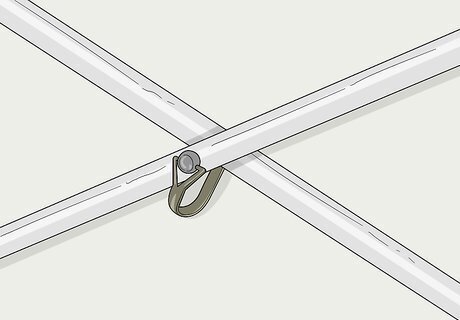 Place wire lock pins through the center holes on the conduit to hold them in place. Lift up both sides of your frame so they intersect and make an X-shape on each end. Line up the holes in the centers of the conduits and push a lock pin through them. Secure the end of the lock pin in place so your frame doesn’t fall down. When you’re ready to take your frame apart, pull out the lock pins to collapse them. You can buy lock pins from your local hardware store or online.