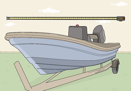 Measure the inside length and width of your boat. Use a measuring tape to find the width of the inside of your boat near the motor, which is usually the widest point. Once you have the measurement for the width, lock the measuring tape in place so it doesn’t contract and move toward the front of your boat. Find the spot on your boat where the body just starts to get narrower. Measure the length from the back of your boat just in front of the motor to the spot where it narrows. Do not measure from the outside edges of the boat since your frame won’t be able to fit inside.