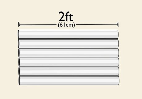 Cut 2 pieces of PVC pipe that match the inside length of the boat. After you find the length, transfer the measurements onto a piece of PVC pipe with a 2 in (5.1 cm) diameter. Use a hacksaw to cut through the pipe at the mark you made, making sure the cut is as straight as possible. Once you cut out the first piece of PVC pipe, cut another piece that’s the same size so you have 2 side pieces for your frame. You can buy PVC pipes from your local hardware store. The employees may be able to cut your length of pipe to size if you need them to.