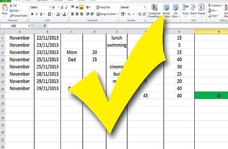 At the end of the month look at your balance. Then count up all the money in your piggy bank. It should (in theory) look the same. If it isn't either add something to the expenditure or income column.