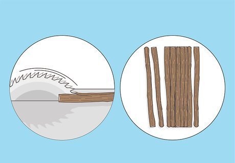 Saw the limbs along their length. Cut off the bark and a thin slab off the side of each limb. A table saw makes this easier, but if you clamp the limb or fasten it so it won't move, this step can be done with a circular saw as well.