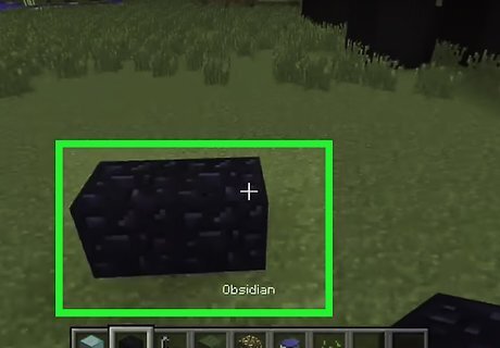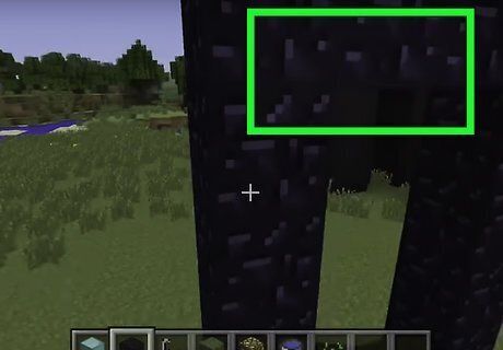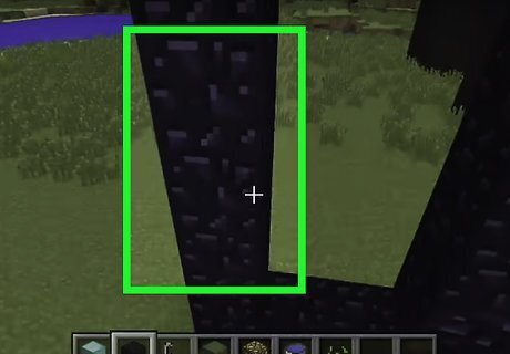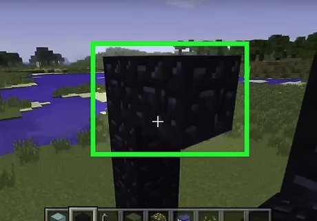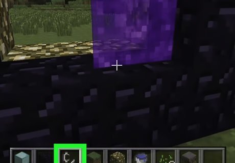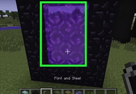 Light one of the obsidian blocks. Stand next to any one of the obsidian blocks, then press the left trigger to apply the flint and steel to the block. This will light the portal; you should see a purple screen appear in the middle of the portal. You may have to press the left trigger a few times to activate the portal.