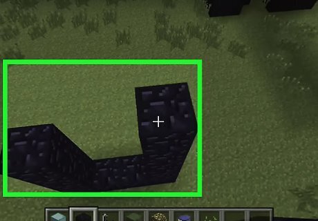 Bridge the distance between the two cobblestone blocks with obsidian. You'll use two obsidian blocks to do this. At this point, you should have a four-block-wide, five-block-tall rectangular portal, 10 blocks of which are obsidian.