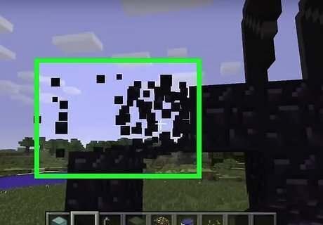 Place a stack of three obsidian blocks on top of each cobblestone block. This will create two parallel, three-block-tall towers on top of the cobblestone placeholders.