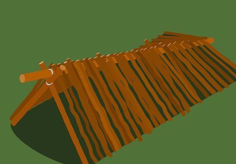 Build a shelter from branches or debris. Even flimsy material can greatly increase your odds of survival in stormy or wintry conditions. Refer to the linked article for full instructions, or follow this quick checklist: Clear a patch of relatively dry ground. Insulate it with a layer of branches or dry clothing. A good rule of thumb to have is 0.91 metres (3 ft 0 in) or more of debris in autumn and fall and about 0.30–0.91 metres (1 ft 0 in–3 ft 0 in) of insulation in warmer weather and 0.61 metres (2 ft 0 in) in rainy weather. Cover this with a simple lean-to structure. If you have time and rope, lean branches against together and tie them together. If not, just lean branches, cardboard, or anything else against a tree trunk or boulder. Cover the structure with branches or other debris as well as you can for insulation (or a tarp if available). Pine branches with the needles facing down trap additional air pockets for insulation. A top layer of leaves or trash increases rain resistance.