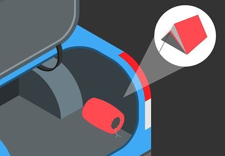 Pack a one-person tent. A lightweight, portable tent takes up little room in your car. Setting one up is much easier and faster than building a shelter from scratch, if you end up lost or caught in a storm. This is also a good solution if you may need to leave your home at a moment's notice. Keep food, water, and fuel in the car as well, or in a handheld pack as portable as you can make it.