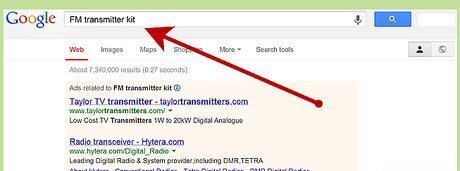 Search. Use Google (or other search engine of choice) to look up "FM transmitter kit" Make sure that prior to purchasing; the transmitter selected is permitted for use in your country. Use of FM transmitters are highly regulated by government agencies and if used improperly may result in fines and imprisonment when caught. Don't forget to check any local electronics supply stores, too. Kits for all types of electronic projects are a popular staple at electronics stores, and the store should be checked if there is one nearby.