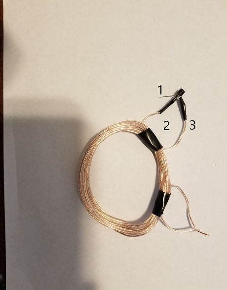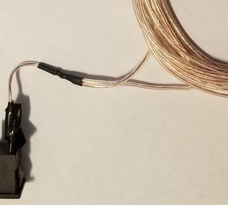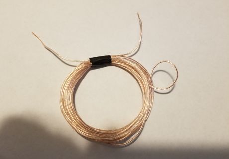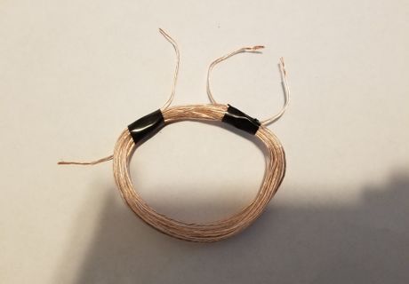 Cut the center of the loop you made in the previous step. Again strip the ends of all cables, ~1/2 inch. Wrap tape around the coil to ensure it doesn't come apart.