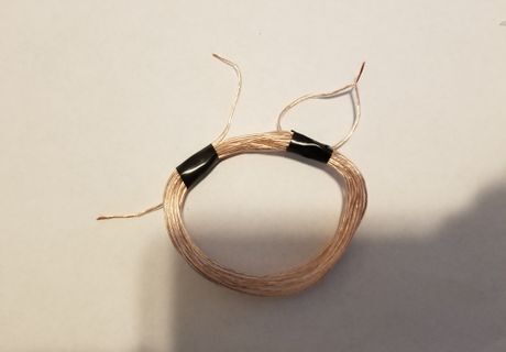 Wrap the transmitter coil. Using the same PVC, wrap the wire 7 times. After the seventh turn create a small loop ~1-1/2 inch across before continuing, and finish with another 7 turns, leaving ~1-inch extra on either side. Wrap tape around the coil to ensure it doesn't come apart.