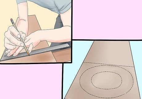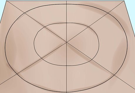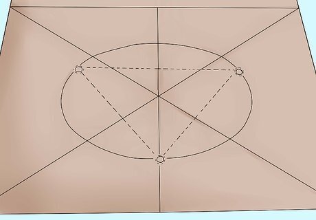 Mark the centers. On the smaller piece, mark the center by drawing two lines diagonally from the corners. On the larger piece, do the same but from the edge to the line drawn halfway down its length.
