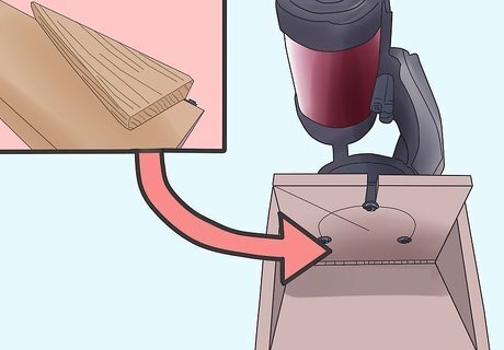 Raise the board to the desired angle. Remember to measure the angle of the top surface of the board. Triple-check the angle, secure the board and drill holes on each side slightly smaller than the wood screws and into the edge of the board. Insert screws.