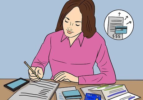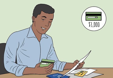 Pay off the balance on your credit card every month. When the bill for your credit card comes at the end of the month, pay off the full amount. If you only pay the minimum, your developing credit score will suffer. Paying your full bill monthly will demonstrate to the card company—and to credit bureaus—that you're financially responsible. As a result, your credit score will increase. If you'd rather not have to remember to make monthly payments, set up auto-pay through the card company's website. Auto-pay lets you schedule recurring payments that will be taken from your bank account on a specific day of each month. If you can't afford to pay off the full balance, pay off at least half of your available limit. For example, if you have a $3,000 limit and have a $2,000 bill, pay at least $1,500 towards the bill.