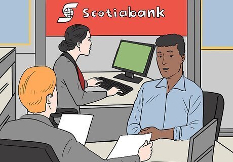 Open a credit card through your bank as an alternative. If you'd prefer not to open a line of credit through a department store, your next best option is to open a card through your bank. Most banks offer credit cards to individuals who haven't yet built up a credit score. These cards may have a low spending limit, but they're a great way to start building your credit. For example, check out the Scotia Bank's “Start Right” credit program or the Royal Bank's “Welcome to Canada” package. You can also look into Canadian banks' starter programs. Most Canadian banks offer these programs, which allow students or newcomers to Canada to open a line of credit. If you're emigrating from a country whose native language isn't English or French, ask to speak with an international representative at the bank.