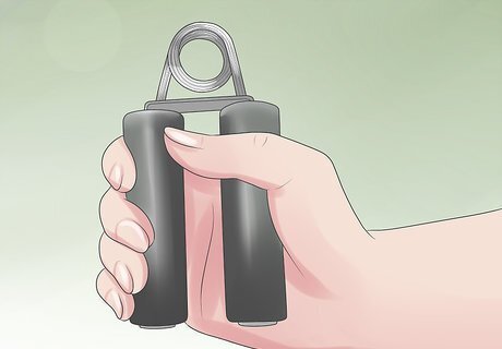 Use a hand gripper, small dumbbell, or exercise band. If you're unable to get any cardio or core exercise at your desk, you still have the option of burning calories with your upper body. A variety of options exist for engaging your upper body while you work - some of the most common are squeezable hand grip devices, small dumbbells, exercise bands, and the like. These options are cheap, small and light. They offer the perfect opportunity for exercise when you have to read something either on your screen or on paper, because, as you read, you probably won't need to use your hands very often. Use this opportunity to squeeze your gripper, do bicep curls, or do an exercise with your exercise band. The more frequently (and vigorously) you're able to exercise, the more calories you'll burn.