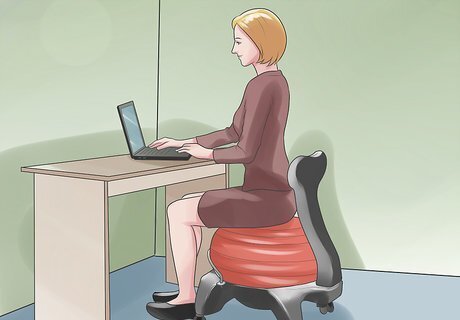 Invest in a balance ball chair. Believe it or not, it's possible to start burning calories and toning your midsection simply by changing the type of chair you use. If your office won't provide one for you, consider buying your own balance ball chair. As you sit in this special type of chair, your body has to subtly flex its core (torso) muscles to keep you upright and balanced. Over time, you will feel a gentle "burn" in your midsection, signifying that you're using your muscles (and burning calories). As an added feature, balance ball chairs allow you to gently bounce up and down while sitting, expending a little extra energy and burning more calories in the process.