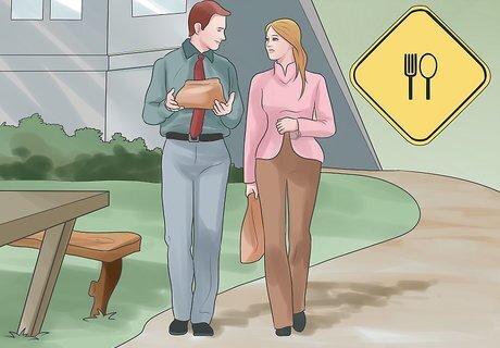 Go out during your lunch break. Depending on the culture of your office, your lunch break may be up to an hour long. If you have time, use your break as an opportunity for a quick aerobic exercise session. Try briskly walking, jogging, or biking to your destination if you can. If you're getting take-out food, you might even try going for a walk as you eat.