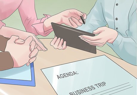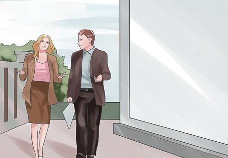 Walk while you discuss business. Rather than sitting in a stuffy office or conference room to tackle important business conversations, when you get the chance, go for a walk outside. Unless there's inclement weather, this practice is so much more stimulating and satisfying than a typical yawn-inducing sit-down meeting that it's a wonder it's not more common. Walking while you talk gives you a great opportunity to burn calories without having to abandon your work. You can walk while you touch base, meet about relevant work issues, or discuss plans for the future. Walking may even re-energize you, giving you more energy to tackle these tasks than you normally would have!