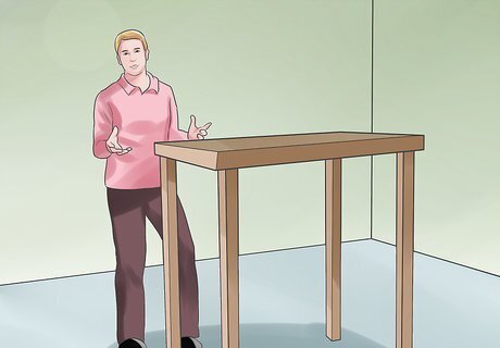 Create (or buy) a standing desk. The best way to burn calories while you work at a desk is to eliminate the factors that make desk work such a sedentary activity, namely, motionless sitting. Rather than sitting down all day, try migrating to a nearby table, counter, or filing cabinet, and, if it is tall enough, set up your laptop there and work while standing. If it's too short, try stacking a few sturdy boxes on top of each other to support your laptop at a higher level. Standing burns more calories than sitting - the precise difference varies from person to person, but is generally about 50 calories per hour. In itself, 50 calories isn't much, but over time even this tiny extra effort can produce results. Let's assume you stand for 4 hours each day at the office - that's 200 calories per day. Over a 5 day work week, that's 1,000 calories. This is high enough that, all other factors being equal, you might even start to lose weight, albeit at a gradual rate, as it takes about 3,500 calories gained or lost for your body to lose or gain 1 pound of fat.