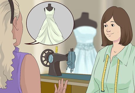 Have a dress custom made. The price of a custom-made dress can be surprisingly reasonable. Check online to find seamstresses who specialize in wedding dresses, then check out their reviews. They will have patterns you can choose from, or you can bring a picture of a dress for them to replicate. Be sure to get a firm price quote. You don’t want to be surprised by the cost when it comes time to pay the bill. You can often keep the cost down by supplying your own material from a fabric outlet store.