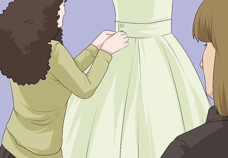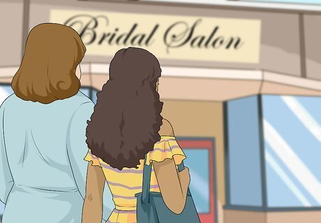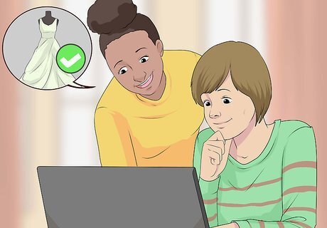 Choose who will go with you. Ask the bridal salon if there is a limit to how many helpers you can bring. At a minimum, brides usually bring their mom or their maid of honor. Choose who you take with you wisely. You want to make sure you value their opinion and know they are looking out for you. Try not to bring too many friends. You don’t want so many opinions that it is impossible to make a decision.
