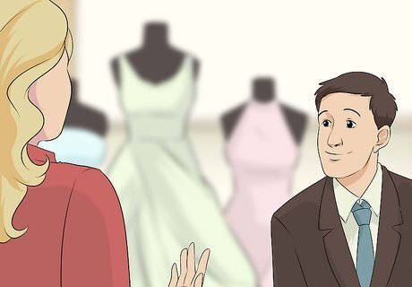 Give yourself plenty of time. To avoid feeling rushed, start the shopping process as early as possible. Most experts recommend starting about eight months before the wedding day. Dresses usually take three to six months to arrive after they're ordered. You will then need additional time to have the dress fitted and adjusted.