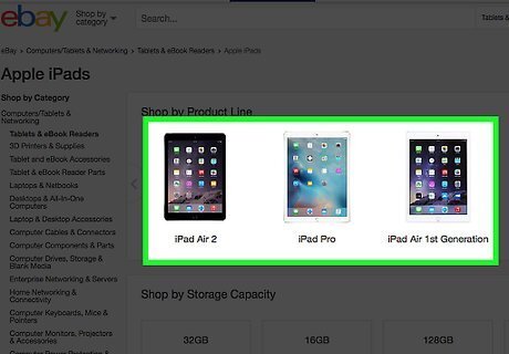 Consider your ideal iPad. Most iPads' storage ranges from 16 gigabytes to 128 gigabytes (though some models, such as the iPad Pro, support up to 256 gigabytes). Similarly, most iPads on the market will support cellular data, meaning you can add the iPad to your cellphone plan and use the data from the pertinent account to access the internet in areas without wi-fi. Other aspects you'll want to consider include the following: Size - iPad screens vary from 7.9 inches across to a whopping 12.9 inches across. Performance - Smaller iPads, such as the iPad Mini, won't be able to process large amounts of data the same way a heftier iPad Air or iPad Pro can. Price - iPads aren't cheap. If you're on a budget, you'll probably want to opt for an older model (e.g., one of the original iPads). Alternatively, you can buy a newer iPad Mini and sacrifice some of the performance of a larger iPad.
