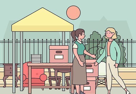 Make the rounds at local garage sales. Garage sales are amazing places to find great deals on items people no longer want or need. Since fine china isn’t as popular as it used to be, many people are opting to sell their fine china than continue to store it. Other people may opt to sell a set of fine china because they somehow found themselves with more than one set. Regardless of why someone is selling their fine china, it’s a great opportunity to purchase an entire set for a great price. Like any item you purchase at a garage sale, it is possible some of the pieces are broken or damaged. However, since you’re probably getting a great deal on the set, having to do without certain pieces, or purchasing brand new replacement pieces is a minor inconvenience.