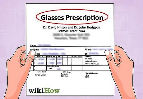 Find out your prescription. If you want to order glasses that fit from an online boutique or manufacturer, you'll need to know your exact prescription for the lenses. You wouldn't want to order a pair of glasses that you can't see out of because you didn't know your correct prescription. If you haven't had glasses before, you should go to an optometrist and have a full eye examination so that they can tell you what your prescription is. If you have been to the eye doctor recently, just call them up and ask them for a copy of your prescription. Specific glasses prescriptions are usually good for about one year. After that, you may want to consider having your eyes re-examined so that you're able to order glasses with the correct prescription.