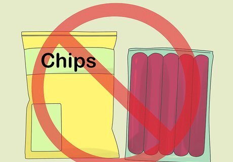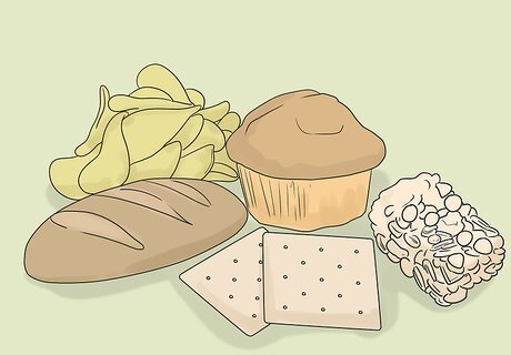 Do not buy products typically derived from grains. Gluten is a wheat protein, commonly found in all wheat and grain products and byproducts. So, to buy gluten-free snacks, avoid buying any items with wheat or other grains. Before you buy a snack item, check for barley, durum, farina, graham flour, kamut, rye, matzo meal, semolina, bulgur, triticale, wheat, and spelt on the label. Stay clear of bread, crackers, cookies, muffins, chips, sweets, snack bars, or other grain products unless they have “gluten-free” on the label. Dips, dressings, and sauces may also contain gluten unless specifically labeled otherwise.