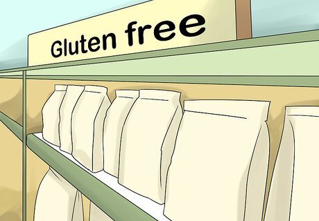 Find the gluten-free section in your local grocery store. If your local supermarket has a specific gluten-free section, this will dramatically decrease your shopping time. If no gluten-free section exists, speak to a manager or inventory staff member and ask if there is a natural or organic foods section. This section will likely contain a number of gluten-free options. Within a gluten-free section, you may be able to find gluten-free versions of certain name brand rice and tapioca puddings. Even certain candies, chocolates, and energy bars come naturally gluten-free.
