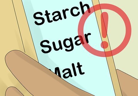 Beware of unnamed food additives or preservatives. Certain starches, sugars, and added flavors may contain gluten, such as malt flavoring or modified food starch. If you're buying processed food that contains many additives, either look for an unambiguous “gluten free” label on the packaging, or look elsewhere in the store for a similar item with fewer unfamiliar ingredients.