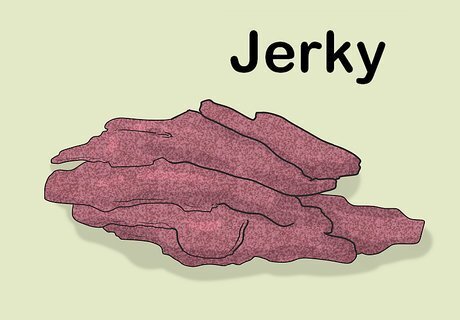 Find jerky or other meat-based snacks. Meat does not contain gluten, so look for snacks that contain meat and minimal added ingredients. Jerky is by far the most popular meat-based snack (followed by the “slim jim” style of long, thin sticks of processed meat). Beef and turkey jerky are the two most common types of jerky, and can typically be found in the snack aisle of a grocery store. These products are gluten free, as long as they have not had a flavoring added which contains gluten (e.g. soy sauce or teriyaki). Specialty stores or natural-foods supermarkets may carry an even larger variety of jerky, including animals like buffalo, bison, or ostrich. These are likely to cost more, though.