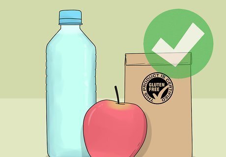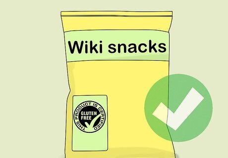 Shop for snack items clearly labeled “gluten free”. If you'd like to snack on an item that typically would have gluten—for example, crackers, snack bars, or cereal—you should readily be able to find a gluten-free version. The packaging for these items should clearly state “gluten free.” Due to the recent prevalence of gluten-free diets, nearly all popular snack foods that conventionally contain gluten are now manufactured in a gluten-free version. Food products labeled “gluten-free,” “free of gluten,” “no gluten,” or “without gluten” are regulated by the FDA and must comply with governmental specifications. Keep in mind that although gluten-free snacks lack wheat products, they may have little other nutritional value in general. Look through the ingredient list for items with plenty of protein and fiber if you're concerned about healthy snacking in general.