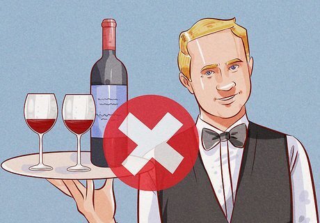 Refrain from buying wine in a restaurant. Wine bottles in restaurants are often marked up extremely high and certainly are not budget-friendly. Limit yourself to wine by the glass or avoid purchasing wine in a restaurant entirely, if possible. If you do buy from a restaurant wine list, don't be afraid to buy the cheapest bottle of wine. Some of the bottles with the highest mark up are hidden as the second or third cheapest on the menu.