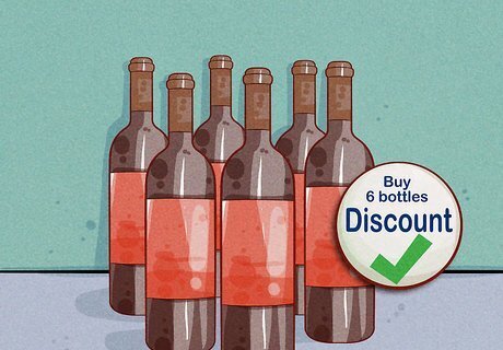 Consider buying wine in bulk if there’s a flavor you love. Some supermarkets will offer you a discount if you buy 6 or more bottles at a time. Ask the supermarket or wine store if you can buy the wine by the case to receive a deeper discount, or mix and match a case of wine. Note that this method will be most successful if you tend to drink wine a lot and only if you won’t get sick of drinking the same type of wine. It may also be a worthwhile expenditure if you need to buy several bottles for others to enjoy, such as for an event or as gifts.