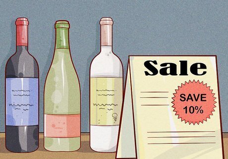 Wait for supermarkets to put their wine on sale. Supermarkets tend to put wine and other items on sale during the holiday season, between mid-November and mid-January. Keep an eye out for sales on wine at your local grocery store and buy your wine when it’s at a lower price. Choose the wine with the largest discount over the cheapest wine. Many supermarkets display both wine that's always inexpensive and wine that's been marked down. If you are buying budget wine that you are not familiar with, it is best to aim for something you may not have a chance to try if it were full price.