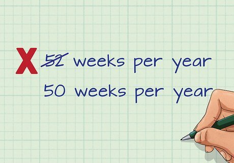 Make modifications for sick time, vacation, or a leave of absence. If you get paid for vacation time or when you're out sick, then you don't need to make any changes to your annual salary. But if your employer doesn't pay you when you're out on vacation or sick, then this in effect changes the number of weeks you get paid in a year. If you take 2 weeks of vacation each year, then you work only 50 weeks per year instead of 52. You need to use 50 weeks to calculate your annual salary instead of 52.