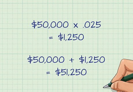 Calculate bonuses. Some companies pay bonuses at different times of the year. These are added to your regular salary. For example, your employer may give holiday bonuses, sign-on bonuses to new employees, or rewards for meeting goals. Also, sales commissions count as bonuses. If you earn bonuses, add them to your total when calculating your annual salary. For example, suppose you earn an annual salary of $50,000 before bonuses, and your boss wants to give you a 2.5% holiday bonus. The amount of the bonus is $ 50 , 000 ∗ .025 = $ 1 , 250 {\displaystyle \$50,000*.025=\$1,250} \$50,000*.025=\$1,250. In this case, your total annual salary is $ 50 , 000 + $ 1 , 250 = $ 51 , 250 {\displaystyle \$50,000+\$1,250=\$51,250} \$50,000+\$1,250=\$51,250.