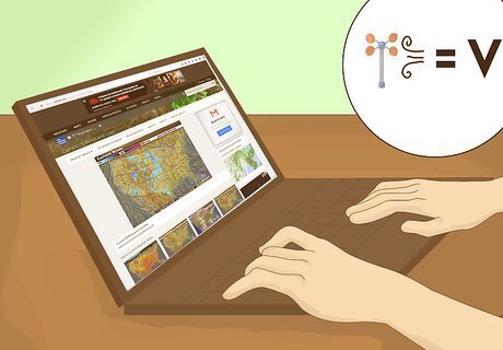 Look up or measure wind speed, V. You can find wind speed estimates for your area on most weather prediction websites, or by searching for "wind speed + (the name of your town)" online. If you have an anemometer or make one using the instructions below, you can measure the wind speed yourself. If your temperature measurement used ºF, use the wind speed measurement in miles per hour (mph). If you used ºC, use kilometers per hour (km/h) instead. If necessary, use this website to convert from knots to km/h. If you're using an official wind speed measurement taken at 33 ft (10 m), multiply it by 0.75 to get a rough estimate of the wind speed at 5 ft (1.5 m), a typical height for a human face. Wind below 3 mph (4.8 km/h) does not have a significant wind chill effect.